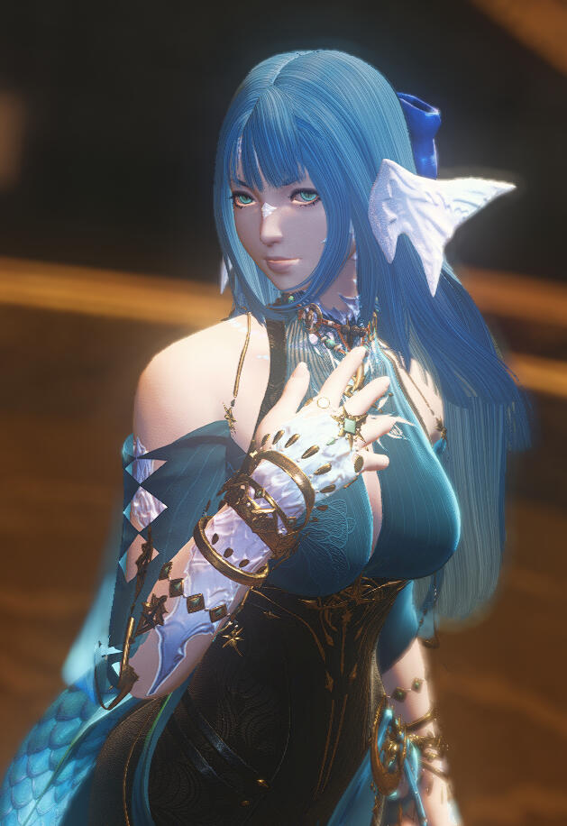 APPEARANCE : Slender and well kept, Rinko keeps her nails manicured and her hair combed neatly, falling in silky straight locks over her shoulders. Her scales shimmer in different pale blues and lavenders, and her attraction to gold jewellery makes her glint and reflect in the sunlight, metal jingling as she walks.Those who look closely might notice her webbed fingers, or her needle sharp teeth as she laughs.